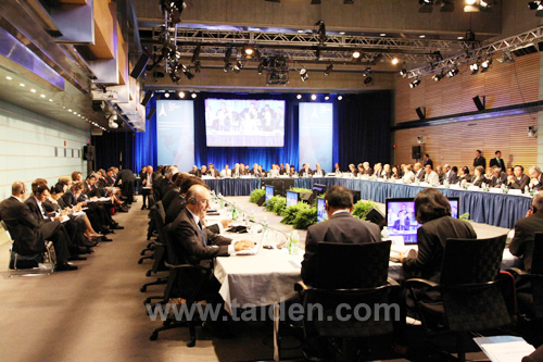 由于去年的出色表现,大会主办方再次选择了TAIDEN全数字会议系统及同声传译系统。本次大会共使用了1500席TAIDEN 32通道数字红外同声传译系统(HCS-5100R/32),42台HCS-4100系列全数字同声传译翻译单元,60台会议发言单元,多套会议管理软件及多台供新闻媒体使用的HCS-4112M/29 广播级音频分配器。值得一提的是,安装在世界银行总部会议室的TAIDEN无纸化多媒体会议系统在本次大会也得到应用并大放异彩。