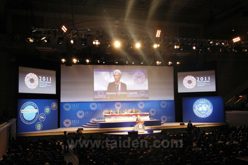 世界银行和国际货币基金组织(IMF)2011年会全体会议9月23日上午在华盛顿举行,会议汇集了187个国家的财政部长、央行行长、专家和学者,追踪全球经济热点问题,评估世界经济和金融形势,探讨风险和挑战的解决之策。